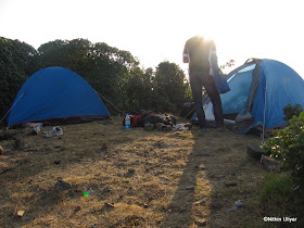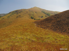 Early morning trekking has its own charm. A dead calm forest suddenly springs into life within the first rays of sunlight. Birds, insects and what not chirping away to glory. Was a very soothing music to the ears :). Since this time around there was no monsoons, didn't encounter even a single leech for the entire duration of the trek. The plan for this day was to reach Bhattara mane for lunch(@ around 11am) and reach peak by 5.30 pm. But things were to be moved beyond expectations for the next 2 days. We covered the first 6 kms of the trek through the dense jungle and 1km of grasslands and reached Bhattara Mane's house at exactly 9am :P. Just before reaching Bhattara mane one gets to witness all the 3 prominent peaks one has to conquer(the first unknown peak, Sheshaparavatha and finally KP) .We were not sure at what time lunch would be served since we didn't want to loose time loitering around this place. The next section would be through sun baked grasslands and Ashwin had some difficulties in the climb. But surprisingly they informed us that it would be ready @9.45am :P. Hence it was a no-brainer and we had some awesome spiced buttermilk followed by the simple lunch of rice, sambhar and pickle (80/head).